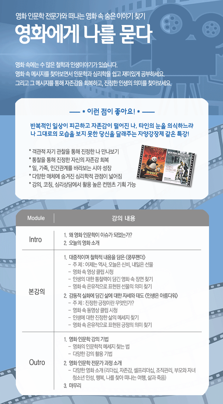 ※ 상기 교육 모듈은 기본 내용입니다.세부내용은 교육 취지 및 대상자의 속성에 맞추어 설계되오니구체적인 내용이 궁금하시면 교육 의뢰 부탁드립니다.